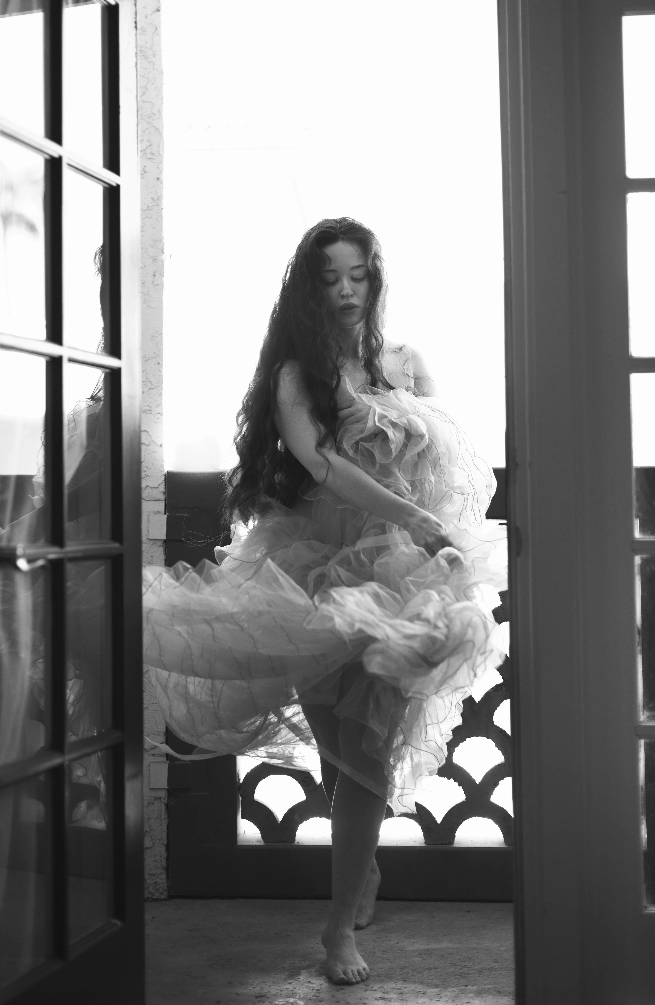 Her session vibes where strong with soft colors and textures including a silk gown and soft braid with a blazer.